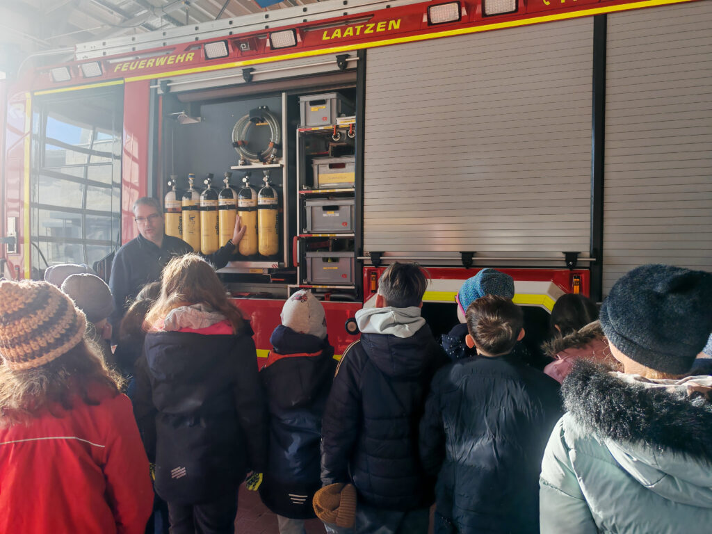 Mit beiden dritten Klassen durften wir die Freiwillige Feuerwehr in Grasdorf besuchen. Vor Ort hat uns der Brandschutzmeister herzlich empfangen und sich viel Zeit genommen, um uns alles ganz genau zu zeigen.