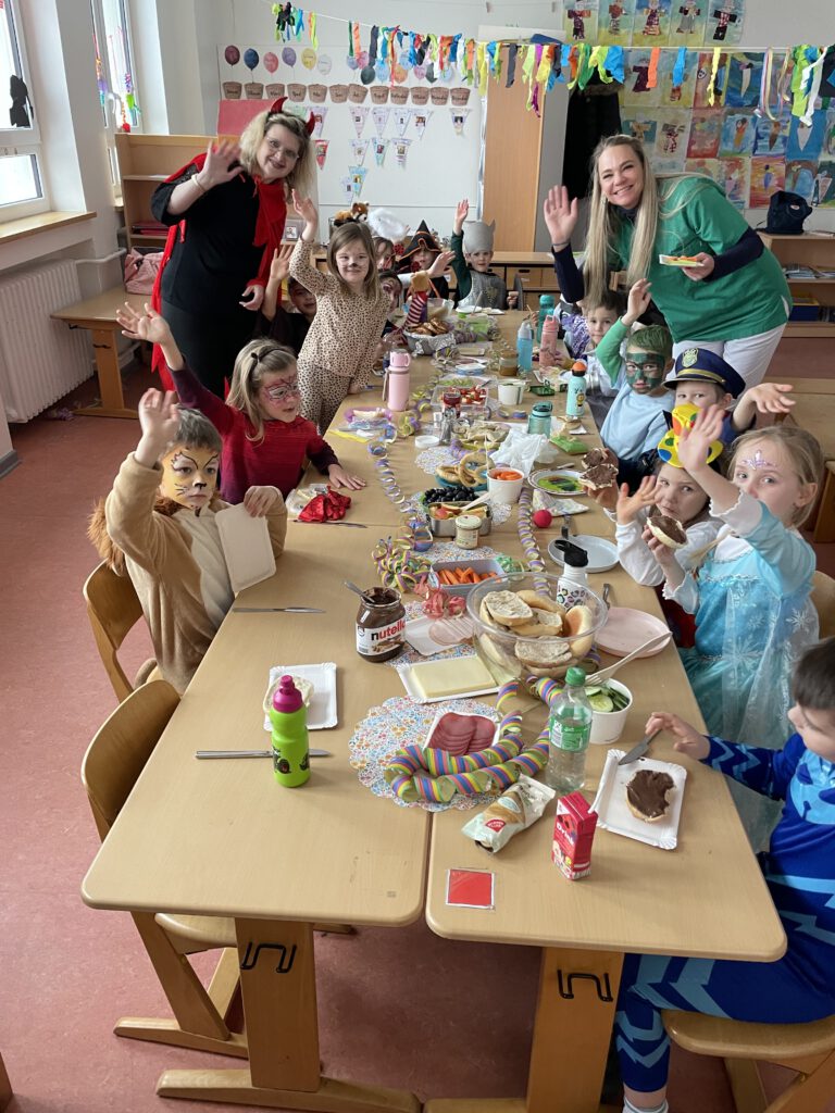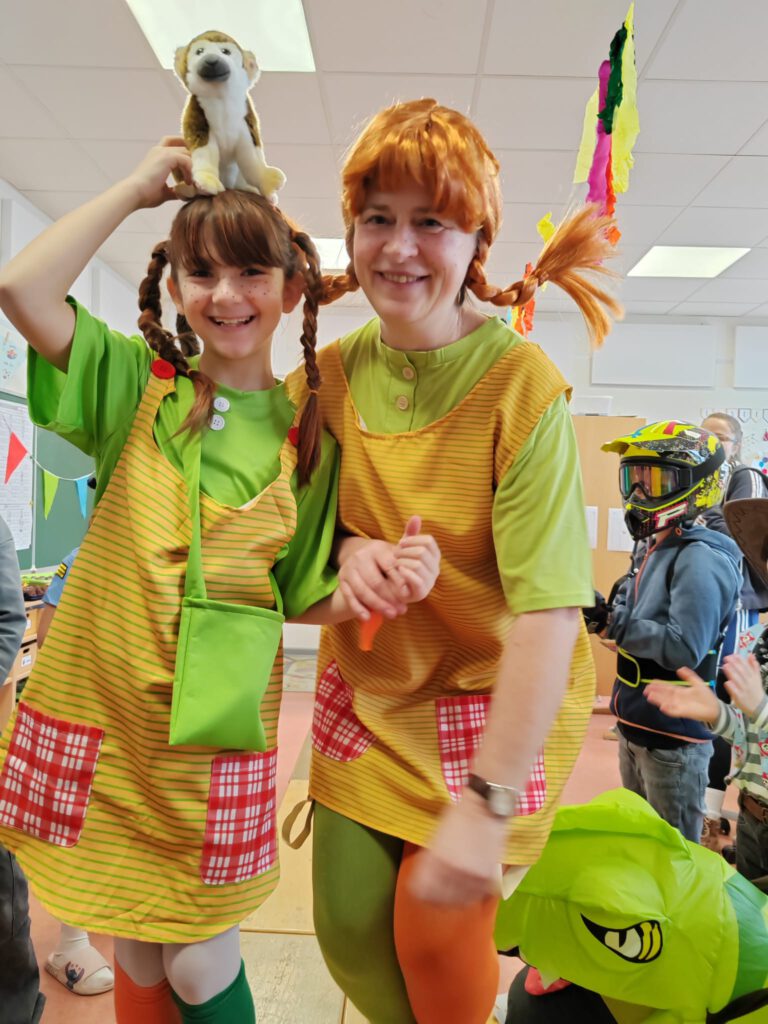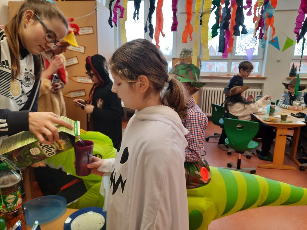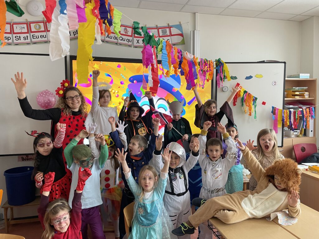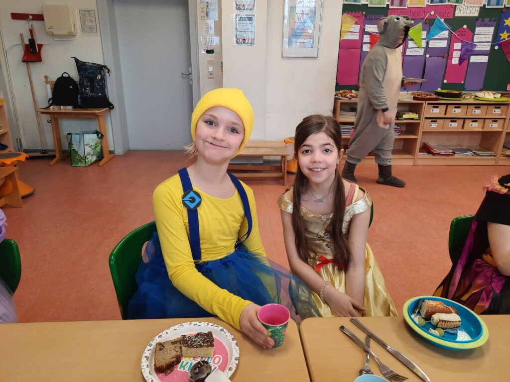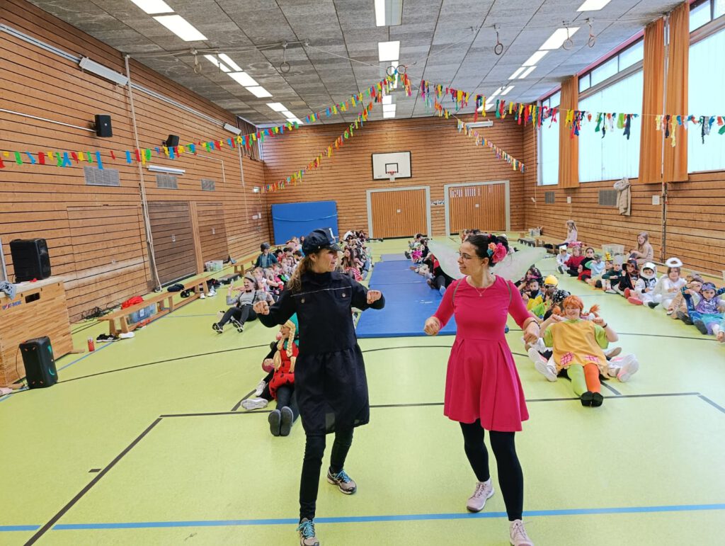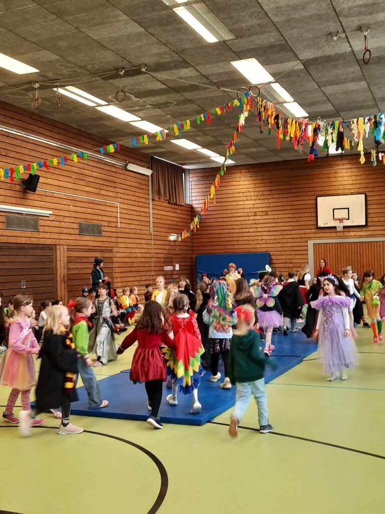 Die Kinder kamen in bunten Kostümen, tanzten, spielten und genossen den besonderen Schultag. In den Klassen gab es kleine Aktionen, Musik und viele fröhliche Momente.