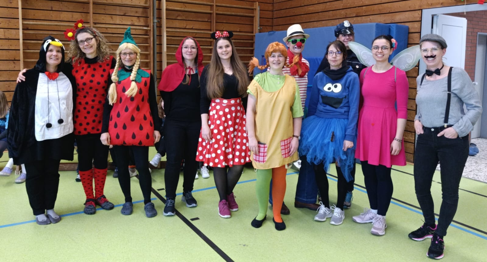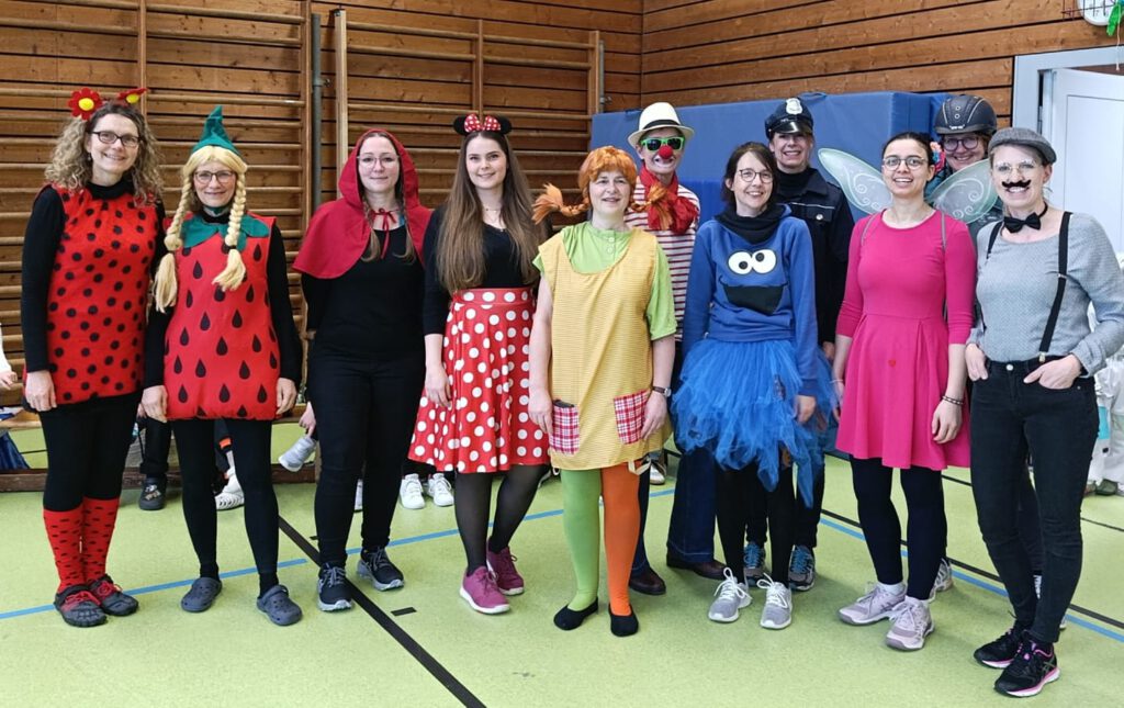 Auch in der Sporthalle wurde gemeinsam gefeiert. Dort wurde getanzt, gelacht und gespielt – und sogar die Lehrerinnen waren verkleidet.
